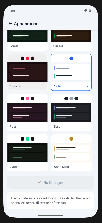 Themes, tab order, categories, and other toggles are fully configurable from settings.