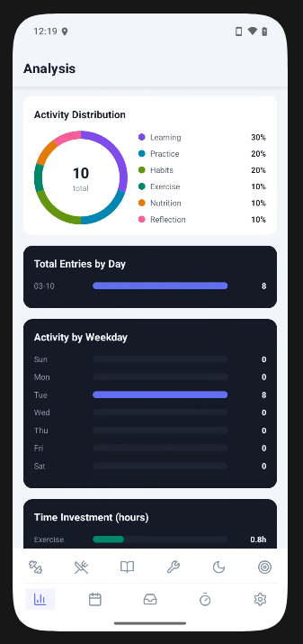 All activity analyses are further congregated into a dedicated meta-analysis to let users compare activities and maintain equilibrium between all aspects of life.
